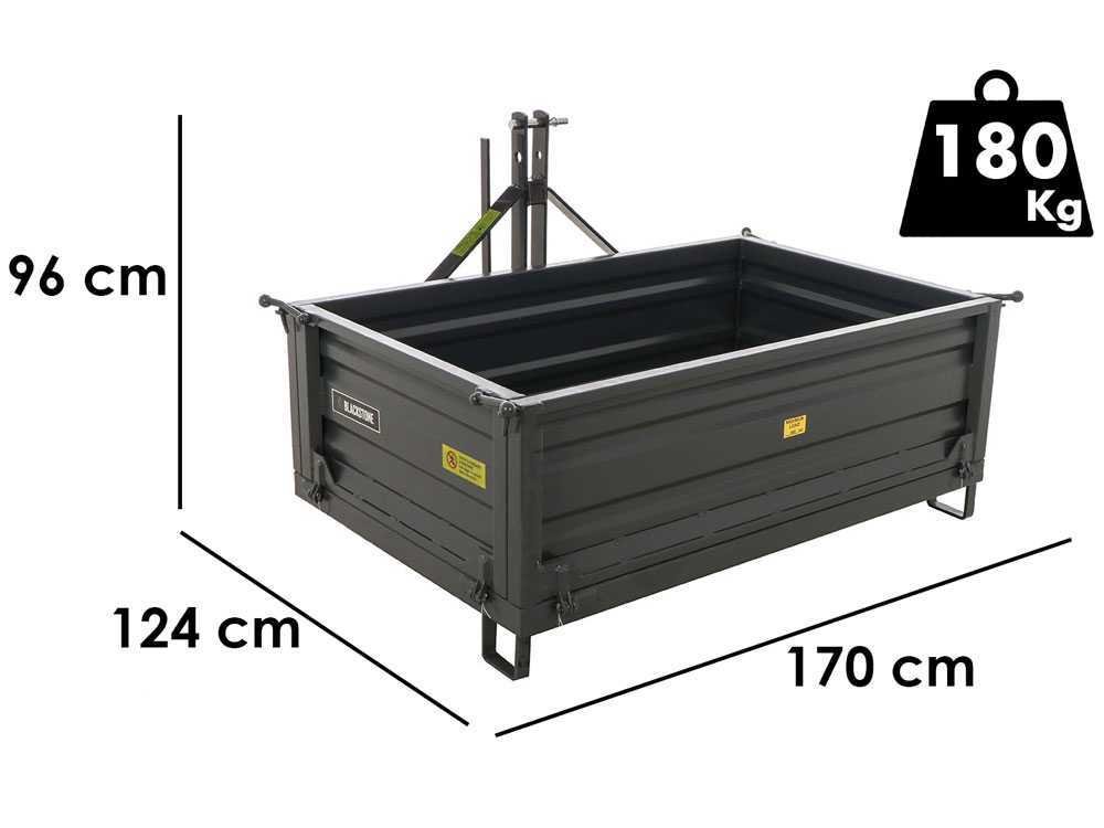 Benne pour tracteur Blackstone B-TB 160 – Basculante – 3 ridelles ouvrables