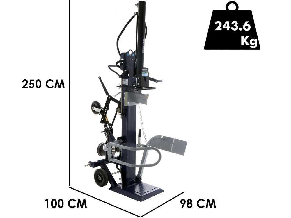 Avec une poussée exceptionnelle de 16 tonnes, elle est en mesure de fendre des bûches de bois noueux, de dimensions variables jusqu’à une hauteur maximale de 110 cm.