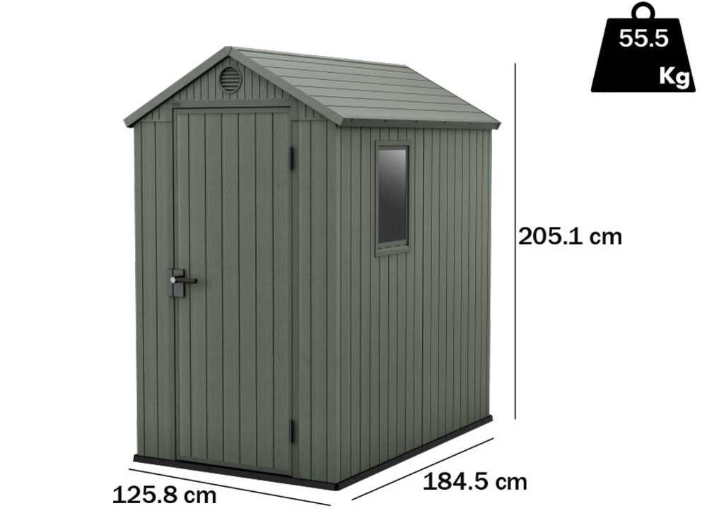Keter Darwin vert – Abri à outils – Avec fenêtre latérale – 125.8×184.5×205.1 cm