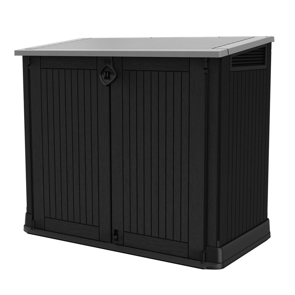 L’armoire Store it Out Midi est extrêmement polyvalente. Elle peut être utilisée pour le rangement des outils de jardin, des petits barbecues et de deux poubelles d’au moins 120 litres chacune.
