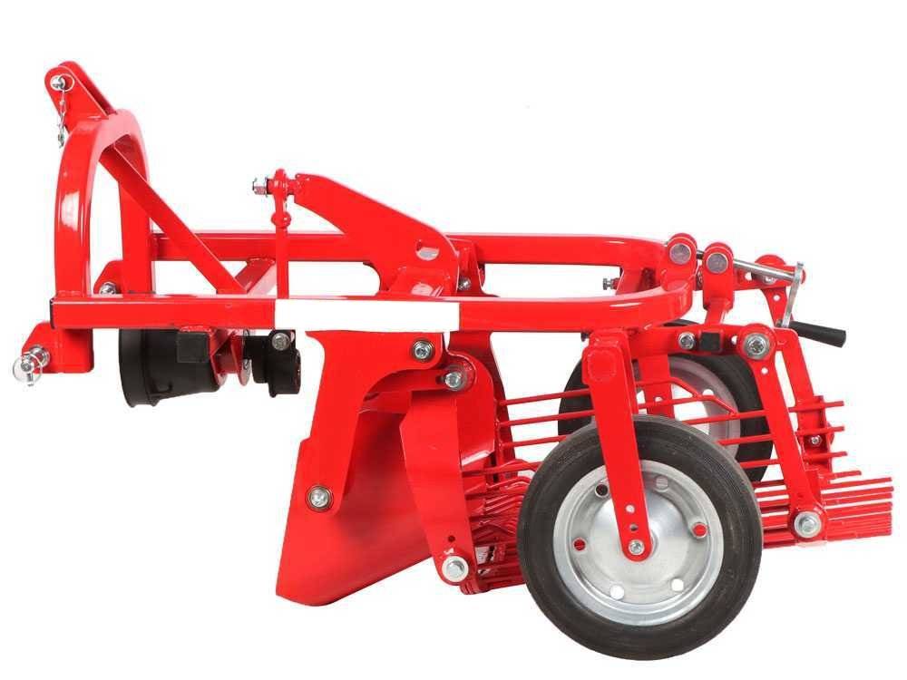 La profondeur de pénétration du soc est réglable et résulte déterminée par l’utilisation de roues de support situées à l’arrière de la machine. Cette caractéristique permet une adaptation précise aux différentes conditions du sol et aux besoins spécifiques de récolte.